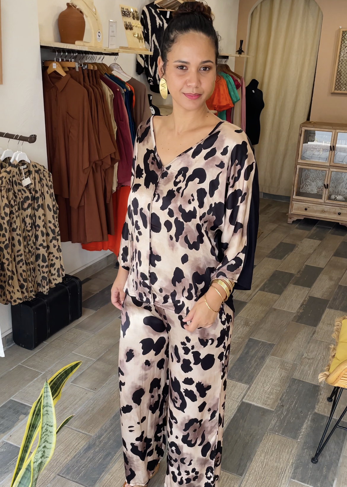Blouse fluide en viscose – Effet soie. Couleur noire unie dans le dos. Composition : 100% Viscose