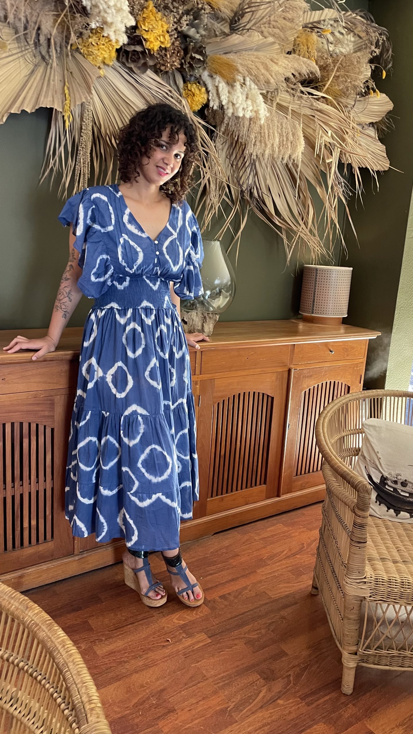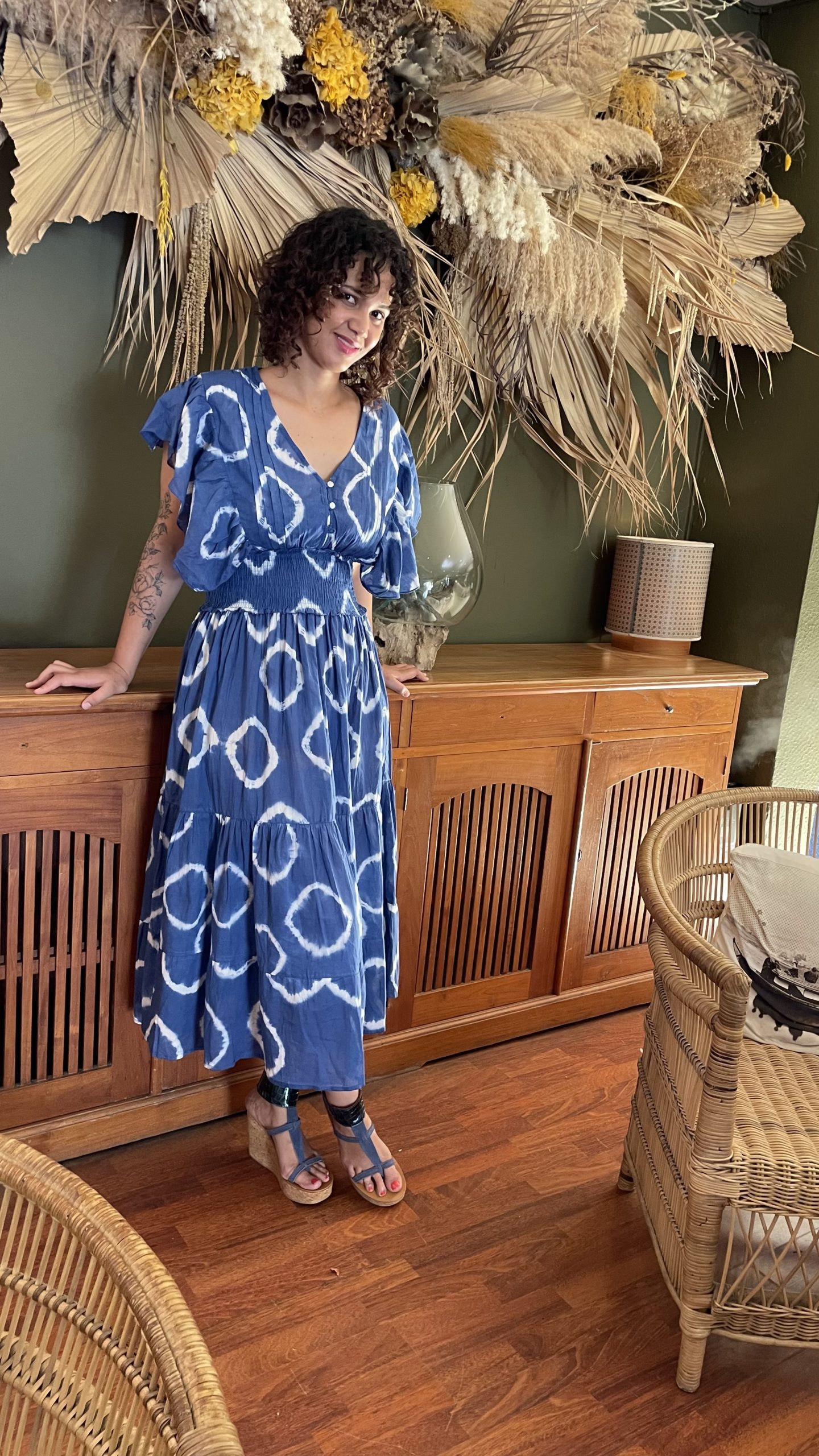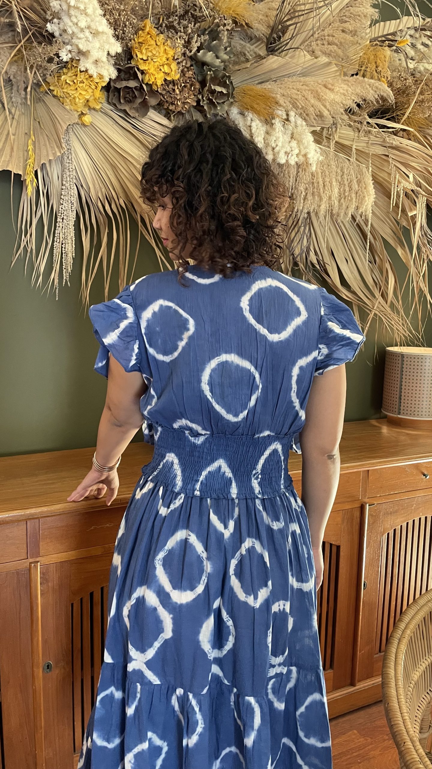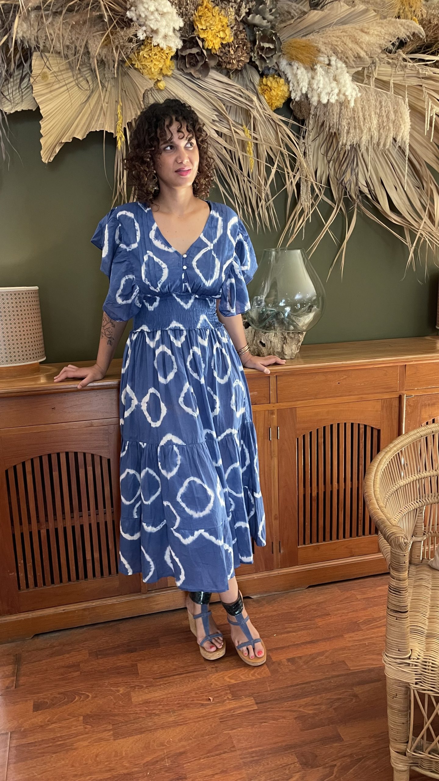 Robe à motifs, bleue.