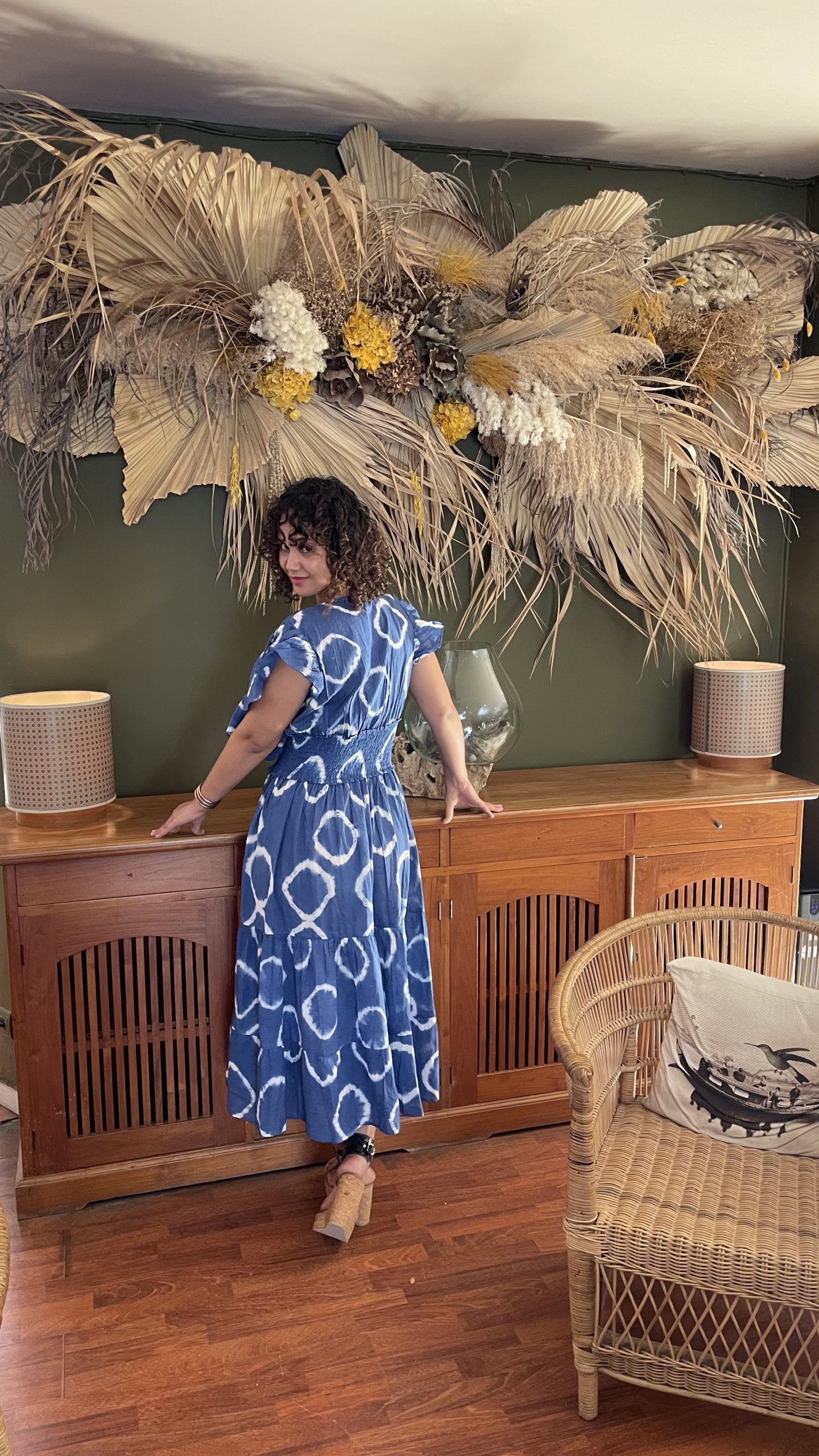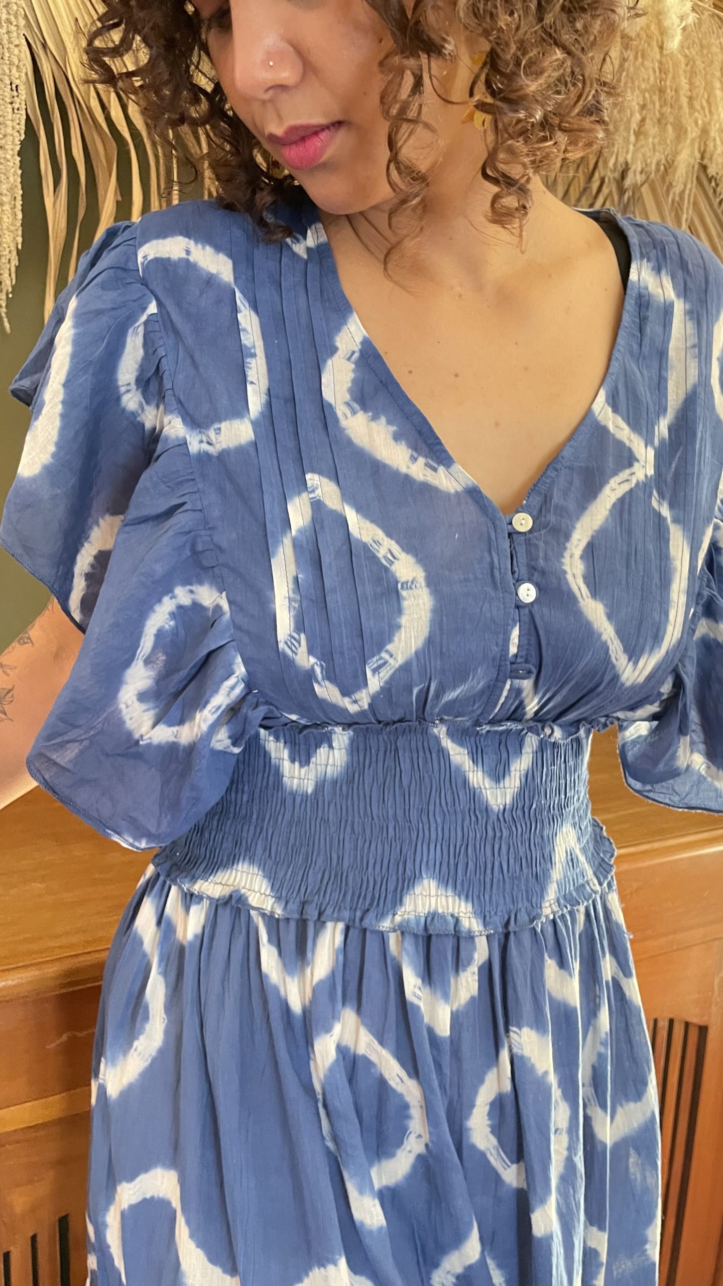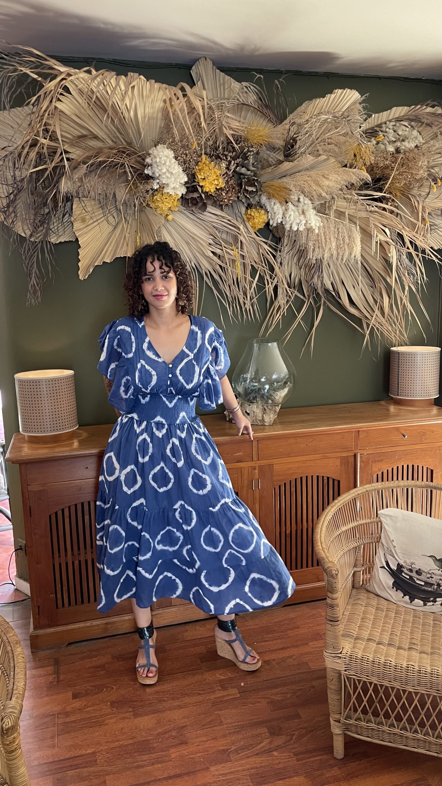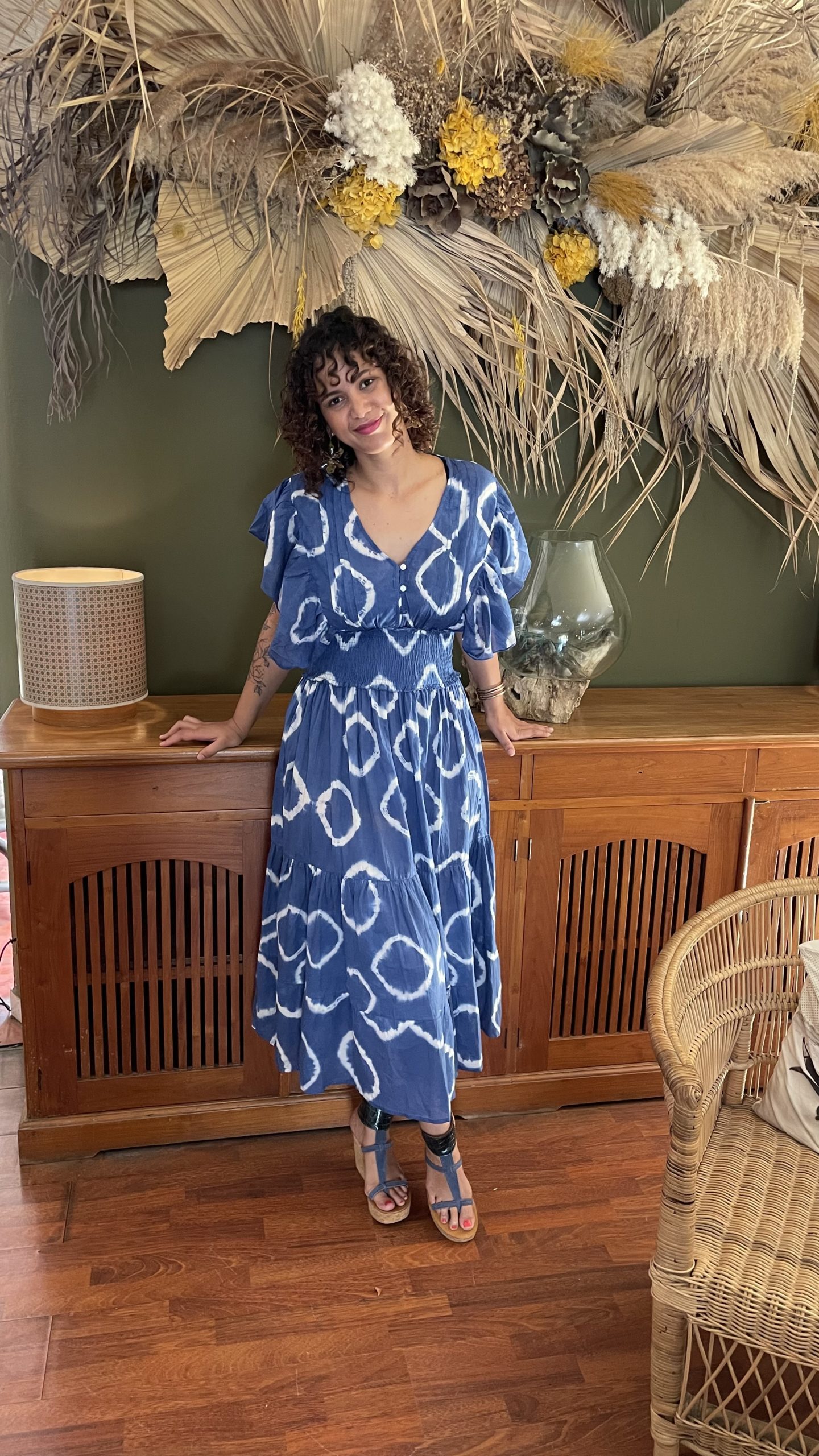 Robe à motifs, bleue.