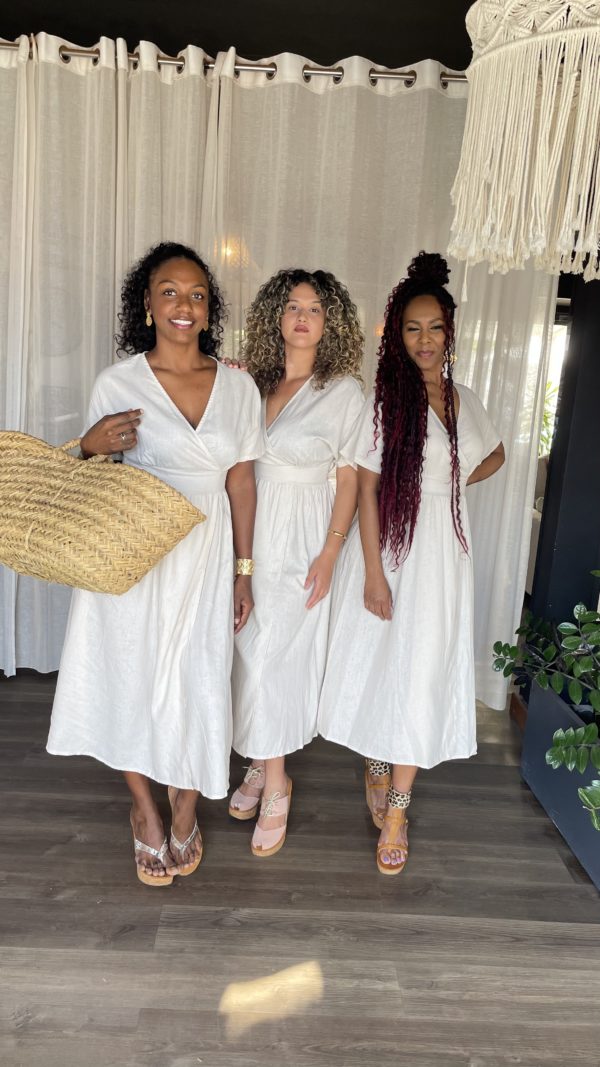 Robe en lin , couleur crème. A nouer dans le dos avec sa ceinture.